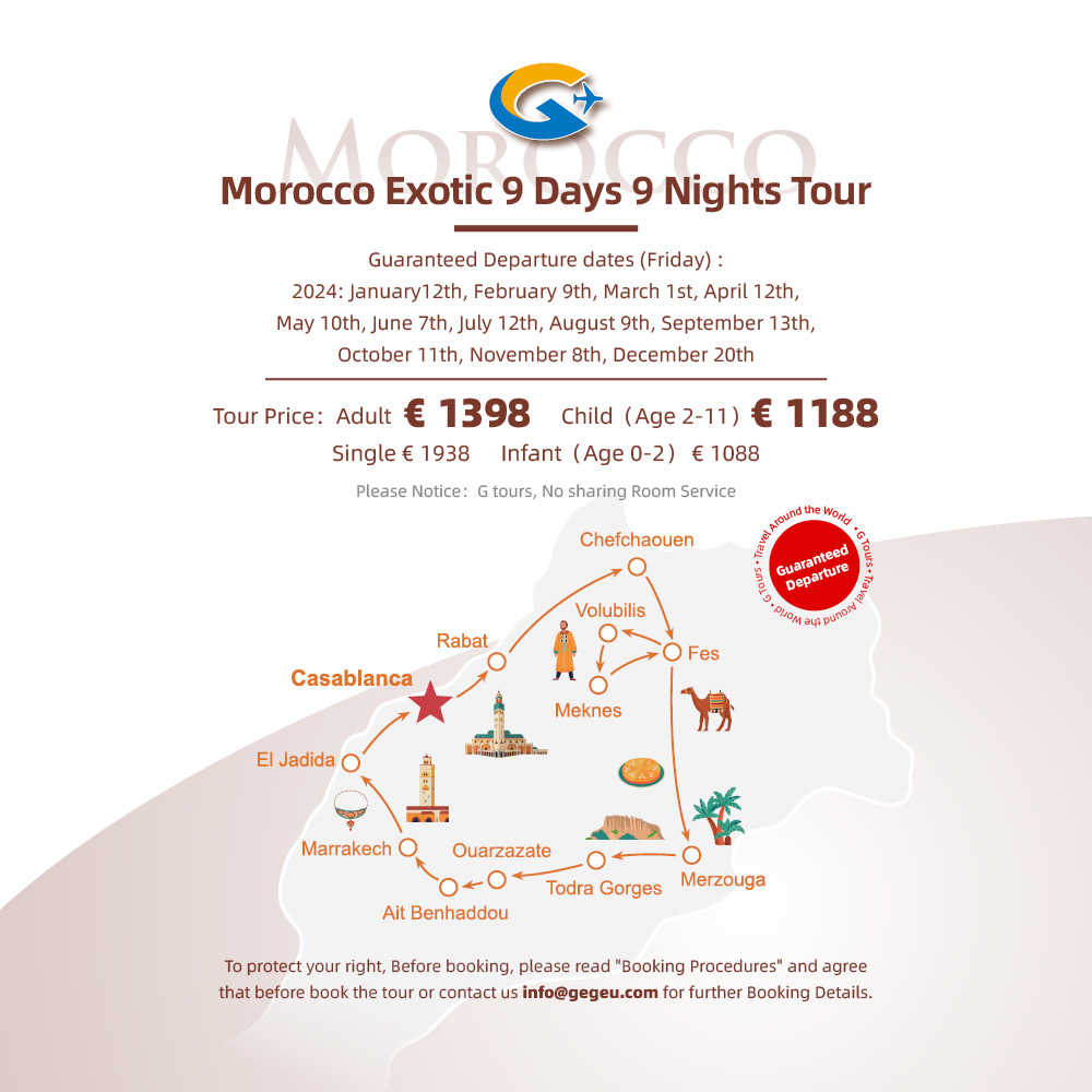 Chuyến Tham Quan 9 Ngày 9 Đêm Khám Phá Morocco: Điều Kiện Tối Thiểu: 2 người, cam kết khởi hành.