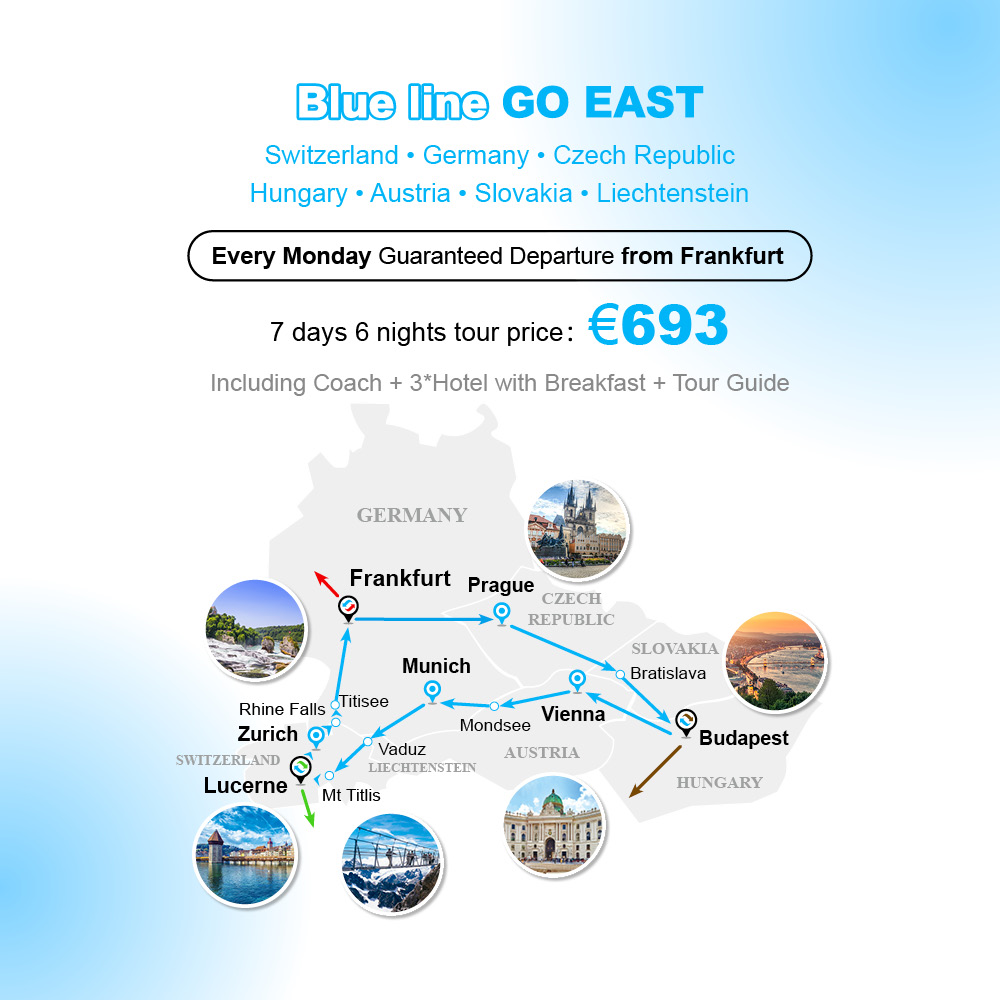 Sau khi lên xe buýt sang trọng tại Frankfurt, hãy thư giãn và tận hưởng chuyến đi qua những cảnh quan đặc trưng của nông thôn Đức trên đường đến Cộng hòa Séc. Prague, một trong những thành phố lộng lẫy nhất châu Âu, là điểm đến đầu tiên của bạn. Bạn sẽ đến vào buổi tối, sẵn sàng khám phá thủ đô xinh đẹp này với kiến trúc cổ tích vào sáng hôm sau.