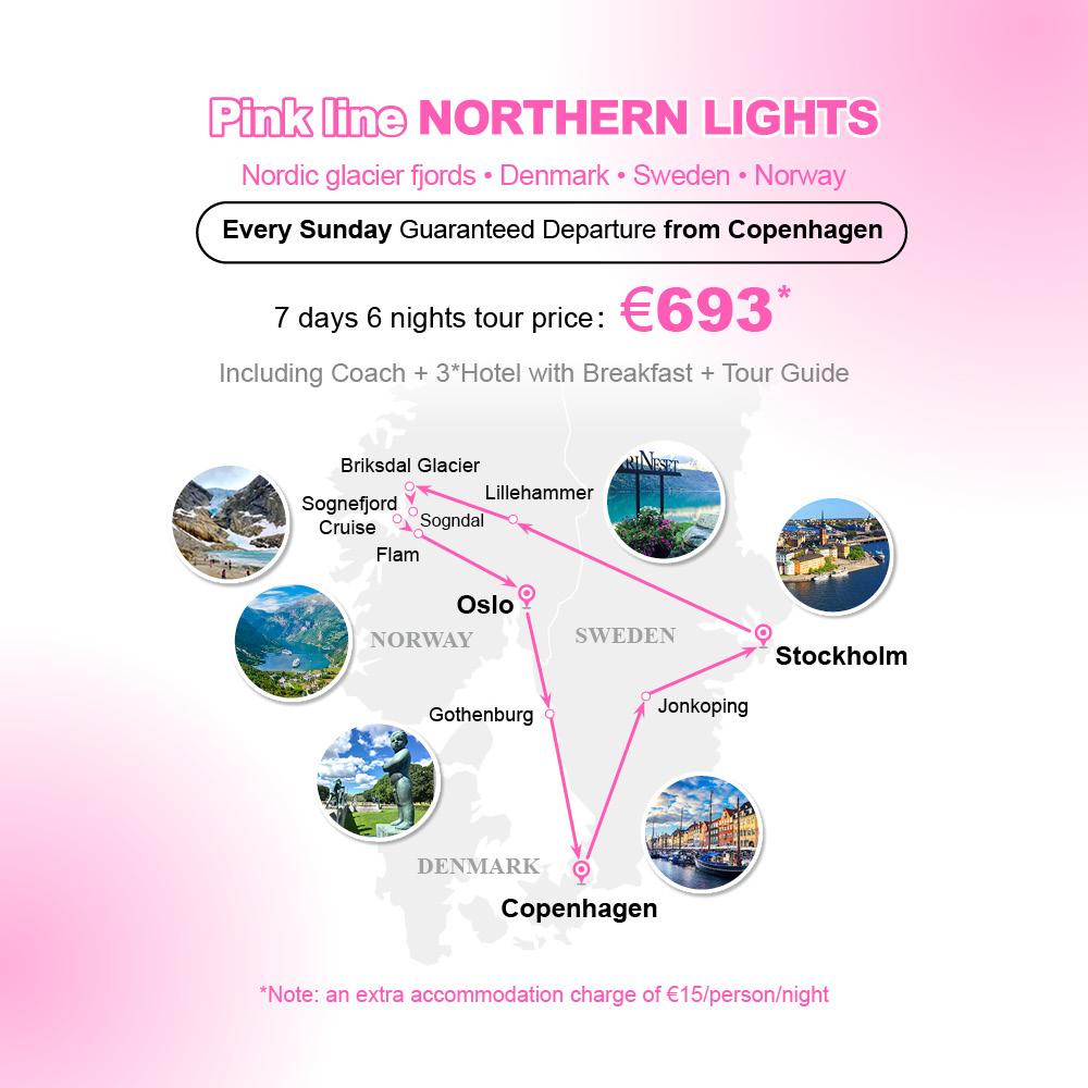 Đối với Tuyến Hồng, sẽ có một khoản phụ phí là 15 euro mỗi người mỗi đêm cho chỗ ở. Điều này là do mức sống cao hơn ở Scandinavia.